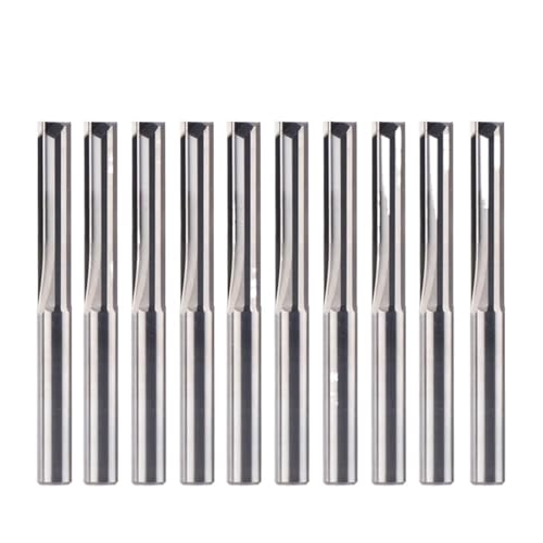 EKVVKOMWK Lot de 10 Fraises Droites à Tige 1/8 Pouce, 2 cannelures en carbure tungstène, for Le Travail du Bois, rainurage, Gravure(10pc-ST2F-D3.1-L17)