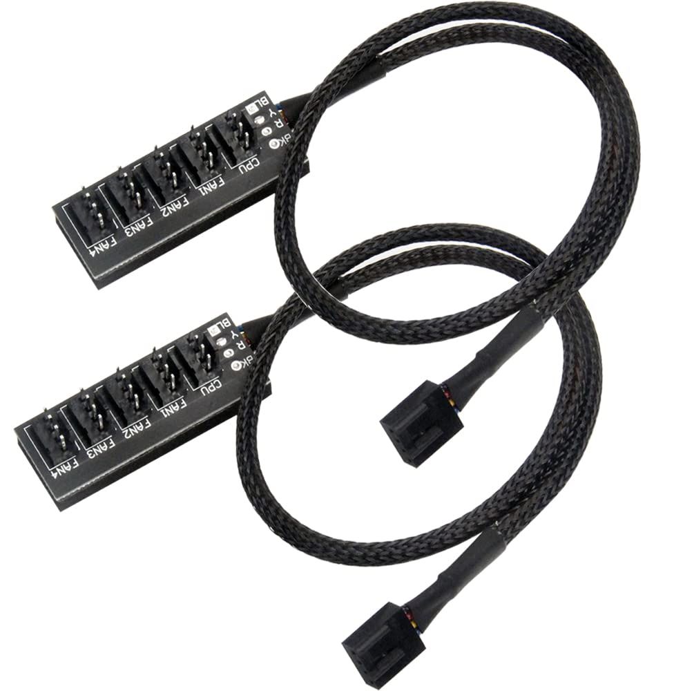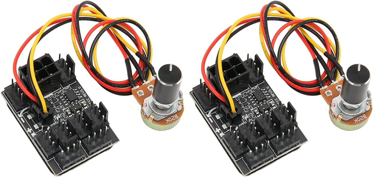 2 Pcs PWM PC Case Cooling Fan Hub, 3 Pin 4 Pin PC Fan Controller Fan Adapter avec 6 Pin Power Port Potentiometer Extension Cable 30CM