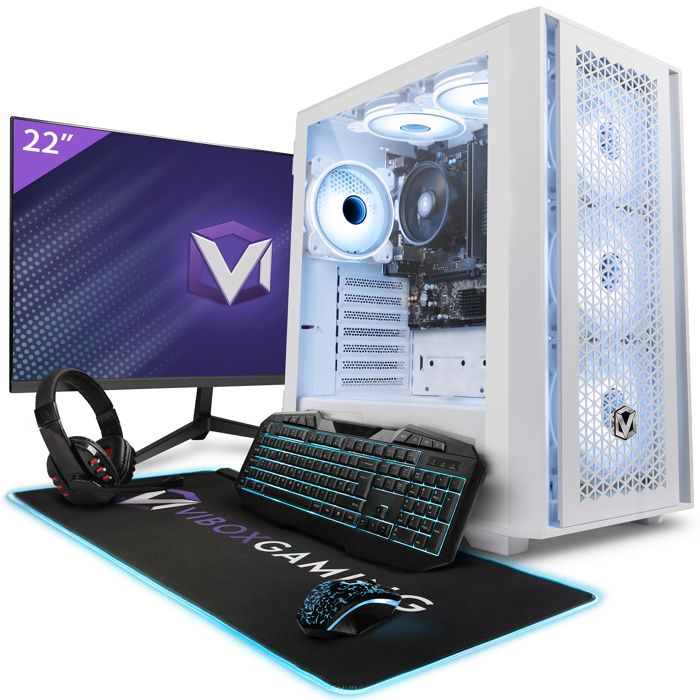 Vibox VI-44 PC Gamer Complet • 22 Écran • AMD Ryzen 3 3200G • Vega 8 • 16 Go RAM • 2 To HDD • 240 Go SSD • Windows 11 • WiFi