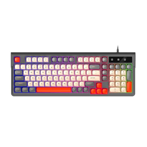 VBESTLIFE Clavier Filaire, 98 Touches, Clavier de Jeu 3 Couleurs avec pavé Numérique, écran D'affichage, éclairage RVB, Anti-Image Fantôme, pour Ordinateur Portable et PC de Jeu (Grey)