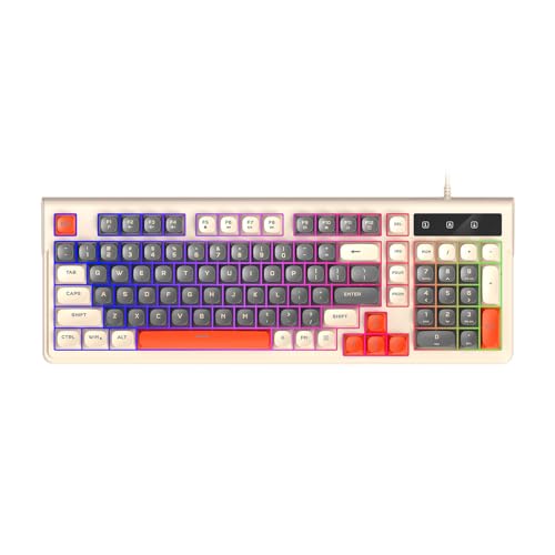 VBESTLIFE Clavier Filaire, 98 Touches, Clavier de Jeu 3 Couleurs avec pavé Numérique, écran D'affichage, éclairage RVB, Anti-Image Fantôme, pour Ordinateur Portable et PC de Jeu (Couleur du thé au