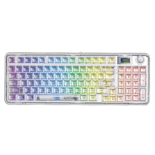 GRwzuPUEG Clavier mécanique 3 Modes, Bouton Multifonctionnel, écran personnalisé, rétroéclairage rvb, échange à Chaud, Compatible avec PC Gamer(White Transparent)