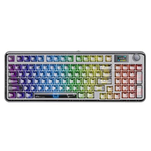 VmugDVoqb Clavier mécanique avec écran personnalisé, rétroéclairage rvb, échange à Chaud, 3 Modes, Bouton Multifonctionnel, Compatible avec PC Gamer(White Transparent)