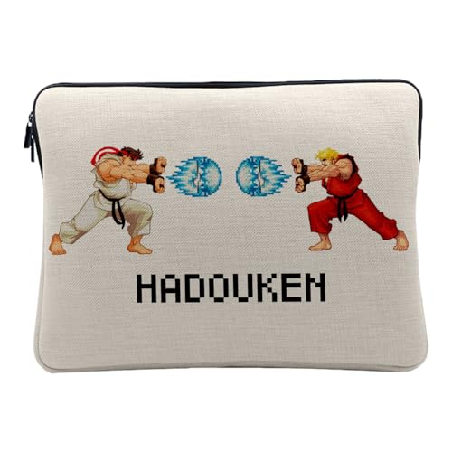 Housse Ordinateur et Tablette Aspect Lin - Hadouken Pixel Art Jeux Vidéo Retro Video Game Combat 8 Bits - 14-15 Pouces Pochette de Protection PC Portable Imprimé en France