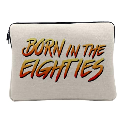 Housse Ordinateur et Tablette Aspect Lin - Born in The Eighties Video Game Typographie Parodie Jeux Vidéo Combat 1980-14-15 Pouces Pochette de Protection PC Portable Imprimé en France