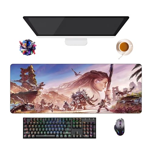 UfgDGS Tapis de Souris Game Horizon Forbidden West | Tapis de Souris XXL Imperméable (80 cm x 30 cm x 3 mm) | Base Antidérapante en Caoutchouc | Protection Clavier et Souris pour PC et Portable (1)