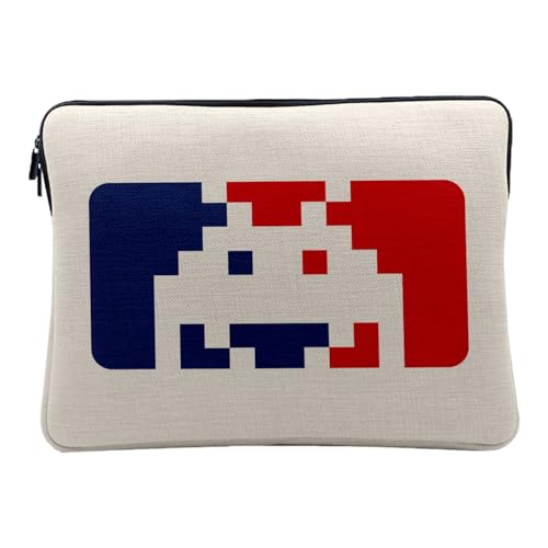Housse Ordinateur et Tablette Aspect Lin - Invader Parodie Jeux Video Retro Arcade Game Retro Pixel Art - 14-15 Pouces Pochette de Protection PC Portable Imprimé en France