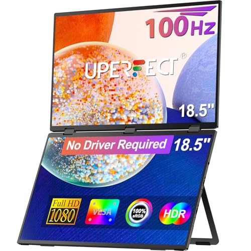UPERFECT Delta 18.5" 100Hz Dual Portable Monitor for Laptop Screen Extender 1080P HDR 360° Folding Stacked Triple Monitor with Brackets & VESA for Laptop PC Phone Game Console (No Driver)