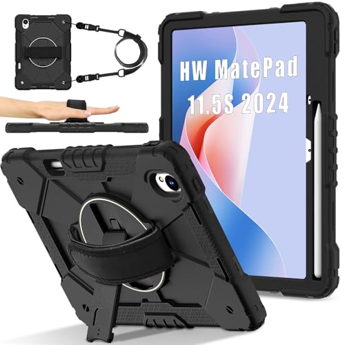 FONREST Étui de protection portable robuste pour Huawei MatePad 11,5" S 2024 avec porte-crayon, béquille pivotante, dragonne, coque de protection hybride rigide en silicone PC hybride résistant aux