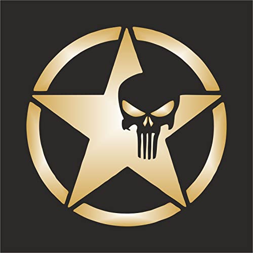 AMA SHOP Adhésif en PVC pré-espacé Étoile Militaire avec tête de mort couleur or | Stickers pour décoration murale laptop| Sticker pour Casque, Moto, Camper, Auto, PC | auto-Tuning |