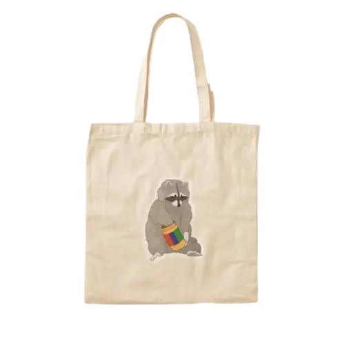 JWPPPATD Raccoon Eating Peanut Butter Cotton Canvas Bag Foldable Fashion Ladies Handbag Casual Shopper Travel Reusable Shoulder Bag