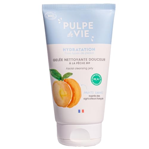Pulpe de Vie - Gelée Nettoyante Visage 150ml - A la Pêche Upcyclée - Mousse Gourmande pour Peau Douce - Routine Visage - Tous Types de Peaux - 99% Naturel