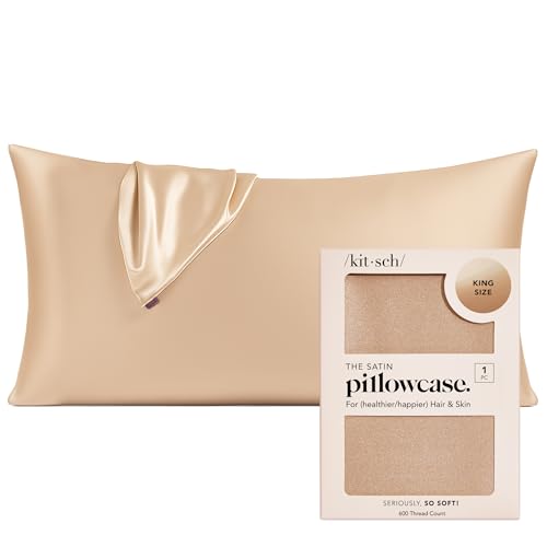 Kitsch Taie d'oreiller en Satin pour Les Cheveux et la Peau, Plus Douce Que la Soie de mûrier, 48,3 x 66 cm, taies d'oreiller rafraîchissantes avec Fermeture éclair, taie d'oreiller Douce, Lisse et