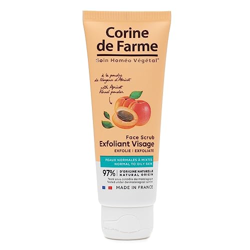 Corine de Farme - Exfoliant Visage à la Poudre de Noyaux d'Abricot - Peau Douce et Nette - Peaux Normales à Mixtes - 97% d’Ingrédients d’Origine Naturelle - Soin de Fabrication Française - 75 ml