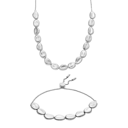 Skagen Collier et Bracelet pour Femme Anja Pebbles en Acier Inoxydable Argenté, Set
