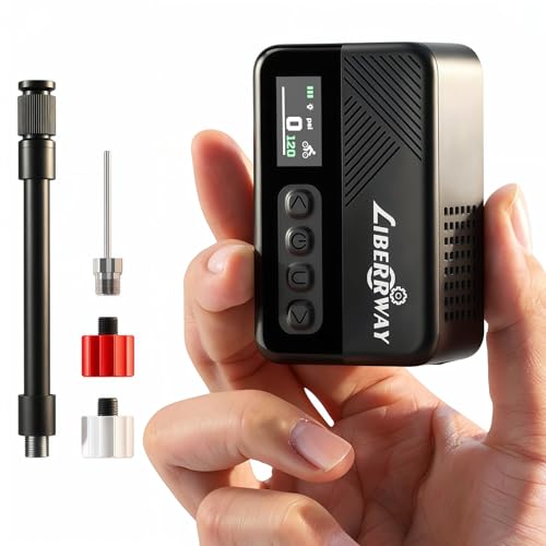Mini pompe à vélo électrique 120 PSI avec manomètre, arrêt automatique et lumière LED – Pompe à vélo portable sans fil pour vélo de route, VTT, vélo électrique, vélo de ville et gros pneus avec valve