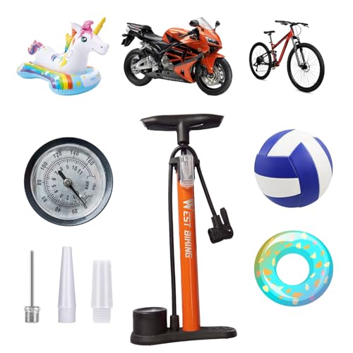 Pompe à Vélo,Pompe à Vélo Haute Pression 160 PSI Montée Au Sol avec Jauge et Pédale de Stabilisation pour Vélos, Valves, Ballons de Basket, Ballons, ETC.
