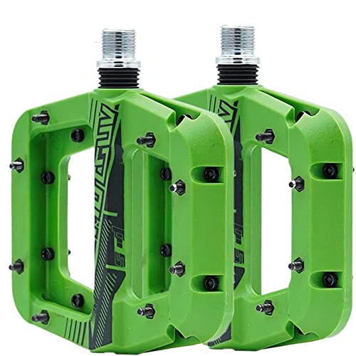 Pedale Velo Pédale de vélos en Nylon Fibre Ultra-légers Large pédale Plate-Forme Plate à 9/16 Pouces VTT Pédales roulements vélo(Green)