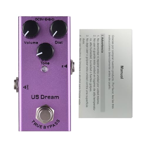 Pédale Distorsion Metal pour Guitare Électrique, Effet US Dream, Boîtier Aluminium Violet, 9V DC - True Bypass, Contrôles Volume/Distorsion/Tonalité, Interface 6,35 mm,