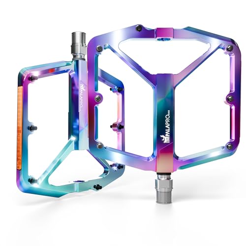 IMPALAPRO Pédale Vélo avec Bandes Réfléchissantes Aluminium CNC 9/16” – Pédales VTT à Large Plateforme avec Picots Antidérapants Amovibles – Pédale Vélo Route Légère 355 g (neochrome)
