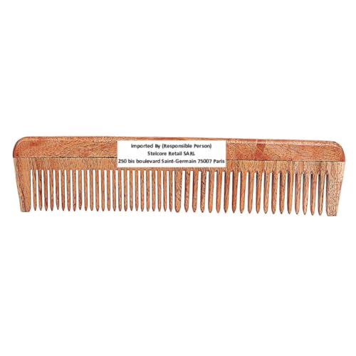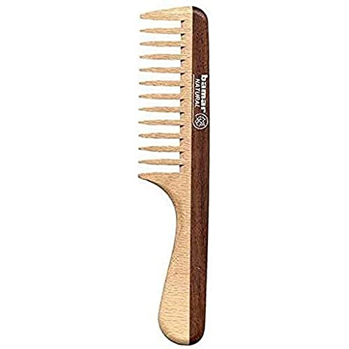 SVATV Peigne en bois de neemwood fabriqué à la main pour démêler les cheveux épais, bouclés et ondulés, non statique et respectueux de l'environnement avec dents larges pour le toilettage – (N-79)