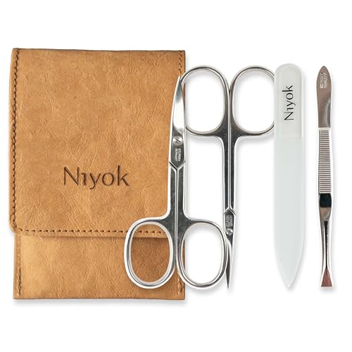 Kit d’Entretien Barbe & Moustache Barber Tools – Brosse 100% Poils de Sanglier & Bois de Poirier, Peigne en Bois, Ciseaux à Bouts Arrondis, Sac de Rangement – Coffret Soins Homme