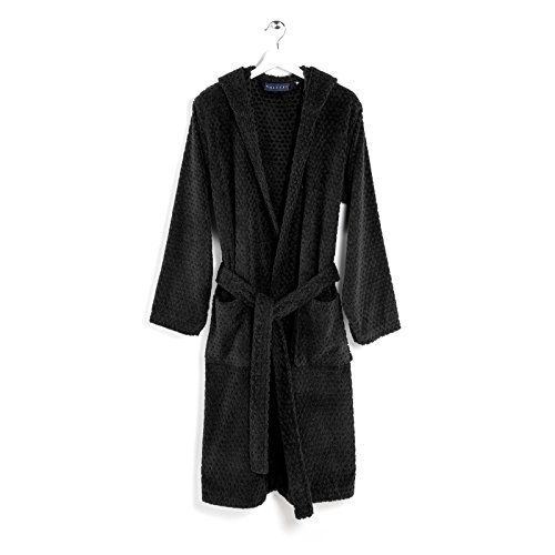 npluseins peignoir de bain femme, peignoir de bain homme à capuche – unisexe, polaire douce, couleurs modernes et tailles variées, longueur mollet, XL, bleu marine