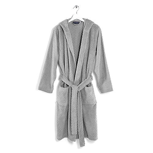 Twinzen Peignoir de Bain Homme - L - Gris - 100% Coton avec Capuche - Certifié OEKO-TEX® - Robe de Chambre Eponge 2 Poches, Ceinture - Doux, Absorbant et Confort