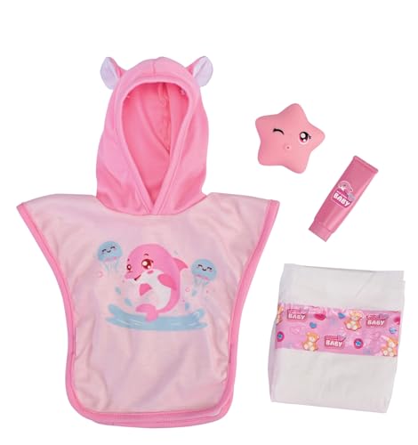 Simba New Born Accessoires de Bain pour bébé – Ensemble de 4 Accessoires pour poupée avec Peignoir, éclaboussures d'eau, Couche et Tube de crème, Convient aux poupées de 30 à 43 cm, à partir de 3 Ans