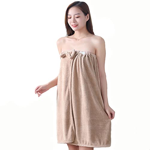 DAIHAN Pareo de Bain Femme Serviette de Bain Robe Sarong Spa Serviette A Sauna Drap de Bain Séchage Rapide Robe Wraps en Bouton Réglable Peignoir Éponge,Brun,75 * 150cm
