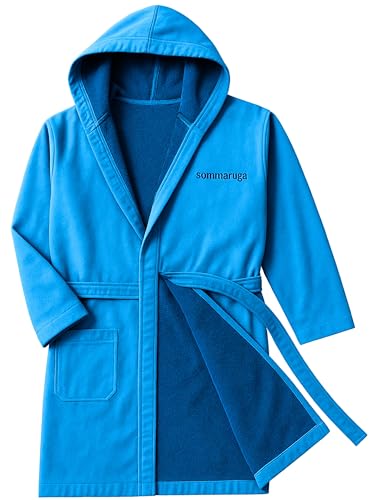 o-day Peignoir pour homme en coton éponge double tissu avec capuche – 100 % coton naturel ultra absorbant, piscine, salle de sport – peignoir microspugna femme, Bleu royal, XXL