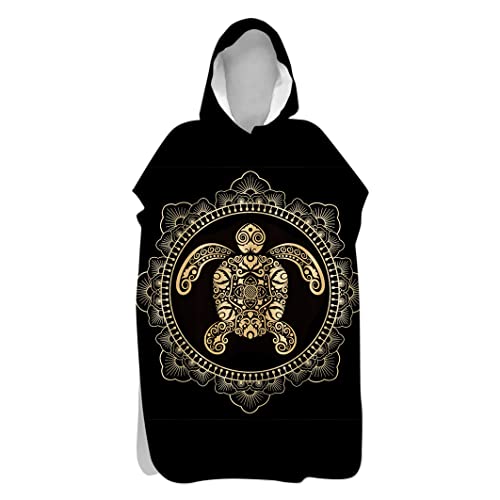 Surwin Serviette Poncho à Capuche Plage Adulte Poncho de Bain Surf en Microfibre Séchage Rapide Serviette à Changement Peignoir Piscine Robe pour Homme et Femme (75x145cm,Totem Tortue)