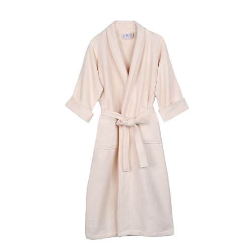 SUPERIOR Peignoir de bain unisexe en coton gaufré avec ceinture, doux et absorbant pour homme et femme, essentiel de bain, crème, Small