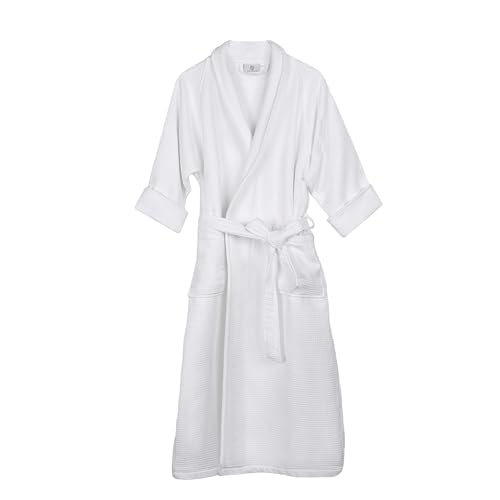 Superior Peignoir de bain unisexe en coton gaufré avec ceinture, doux et absorbant pour homme et femme, essentiel de bain, blanc, Small