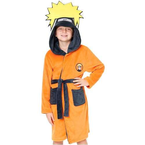 Naruto Peignoir Enfant Garçon 7–15 Ans, Robe de Chambre Polaire Chaud avec Capuche et Ceinture, Cadeau Cosy Manga Ado (7-8 Ans, Orange)