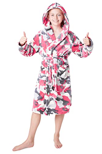 CityComfort Robe de Chambre Enfant - Peignoir Enfant Polaire Capuche (Rose Camo, 11-12 ans)