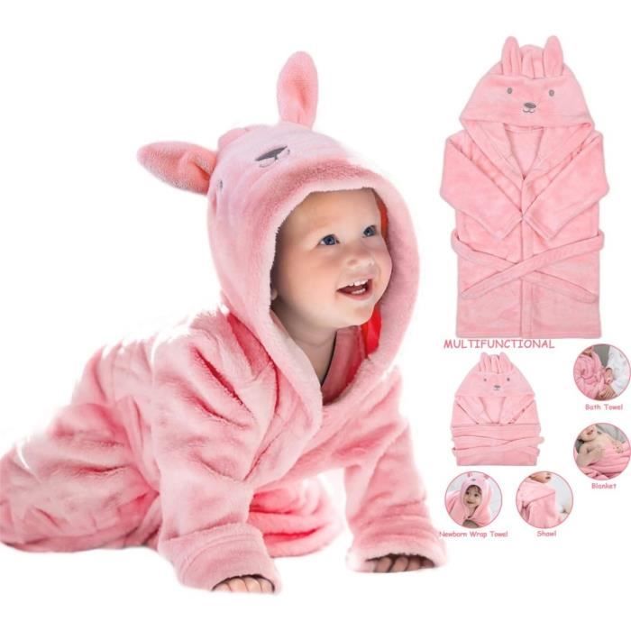Peignoir de Bain pour EnfantPeignoir en PelucheGarçon/Fille à CapucheAnimal Doux Chaud Polaire Robe de Chambre/Pyjamas 0-3 Ans