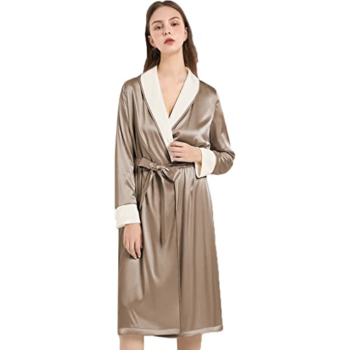 KJBDQQH Robe De Chambre en Satin Robes Solides Femmes à Manches Longues Chemise de Nuit Dames Filles Soie Satin Lisse Printemps déshabillé en Dentelle Femme Peignoir(White,M)