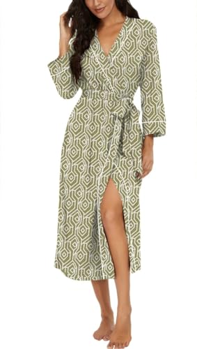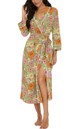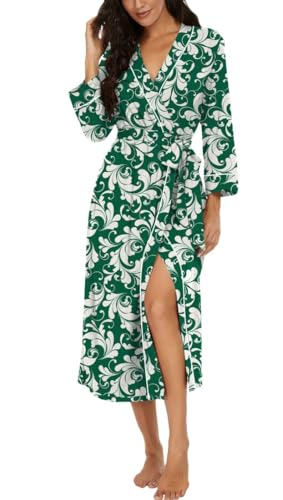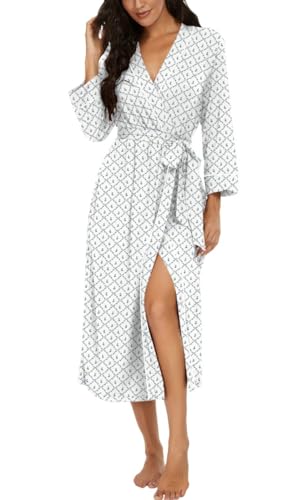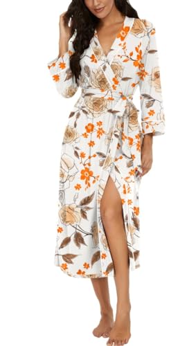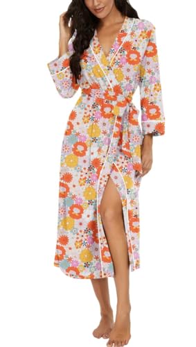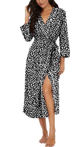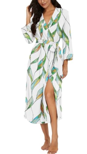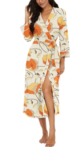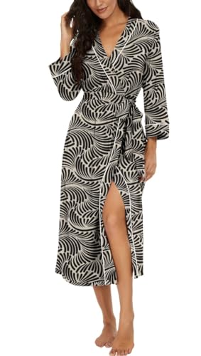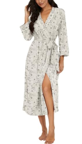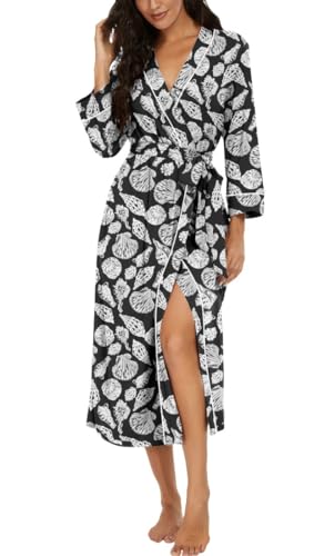 PrinStory Peignoir kimono léger pour femme - Manches 3/4 - Robe de chambre - Vêtement de nuit long - Décontracté - Peignoir de sauna, M