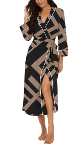PrinStory Peignoir kimono léger pour femme - Manches 3/4 - Robe de chambre - Vêtement de nuit long - Décontracté - Peignoir de sauna, S