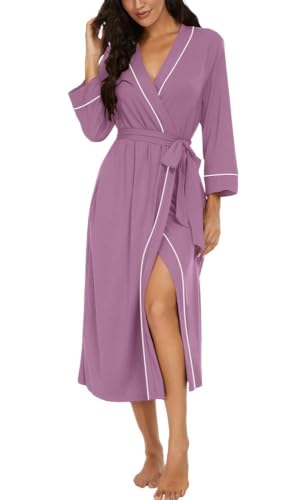 PrinStory Peignoir kimono léger pour femme - Manches 3/4 - Robe de chambre - Vêtement de nuit long - Décontracté - Peignoir de sauna, Violet Rouge, M