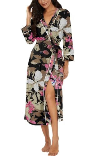 PrinStory Peignoir kimono léger pour femme - Manches 3/4 - Robe de chambre - Vêtement de nuit long - Décontracté - Peignoir de sauna, L