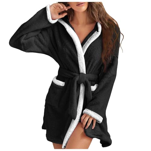 Peignoir pour femme en polaire et coton - Moelleux, chaud, moelleux, sauna, peignoir de maison, long et douillet, peignoir de chambre à capuche en polaire douce et légère
