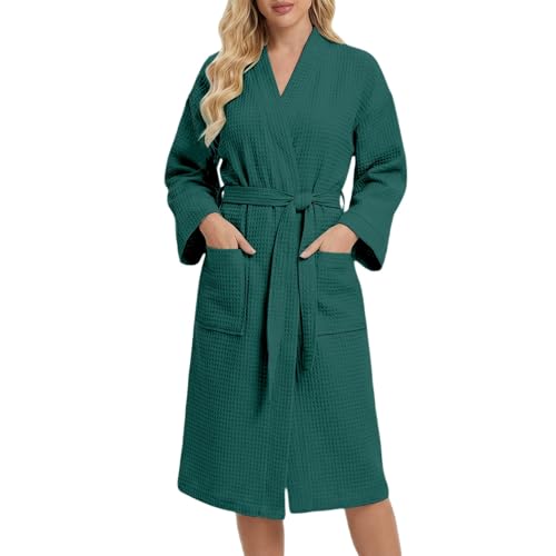 Peignoir Enfants Filles Coton Gaufré, Filles Peignoir Nid D’Abeille Plaid Kimono Robe, Blue, 10-15 T
