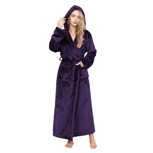 Peignoir d'hiver long en polaire for femme - Pyjama à capuche allongé - Peignoir doux et confortable à manches longues - Chaud et confortable - Peignoir à capuche moelleux super doux - Cadeaux for fem