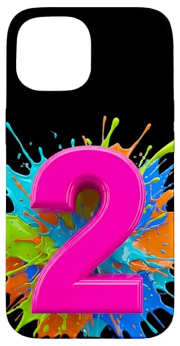 2ème Anniversaire Motif éclaboussures de Peinture pour Enfants Filles garçons 2 Ans Coque pour iPhone 15