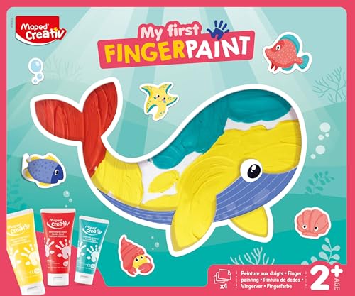 MAPED CREATIV - My First Finger Paint - Kit de Peinture Sensorielle pour Tout-Petits - Activité Créative dès 2 Ans avec Cartes, Tubes de Peinture et Autocollants