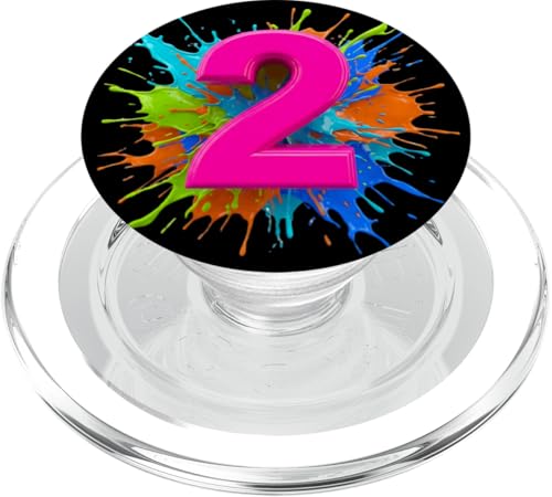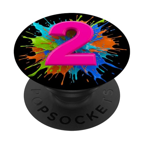 2ème Anniversaire Motif éclaboussures de Peinture pour Enfants Filles garçons 2 Ans PopSockets PopGrip Adhésif