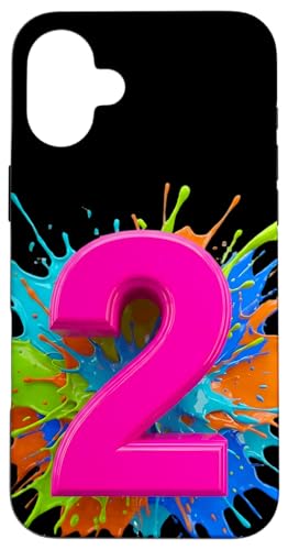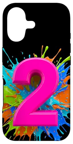 2ème Anniversaire Motif éclaboussures de Peinture pour Enfants Filles garçons 2 Ans Coque pour iPhone 16 Plus