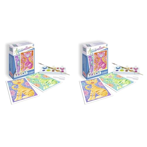 Sentosphère - AQUARELLUM MINI - CHATS 4 PLANCHES - Kit peinture - Peinture Aquarellable Magique - A partir de 5 ans - fabriqué en France, Ensemble de 8 pièces (Lot de 2)